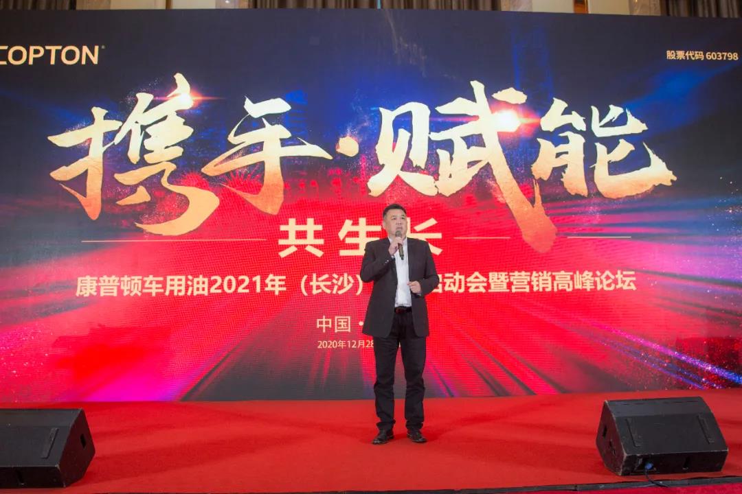 壓軸的車用油總經理助理于鵬先生所有合作伙伴帶來了2021年開門紅政策。在全球基礎油漲價的現狀下,康普頓作為廠家,體現品牌方在市場經營壓力來臨之前的責任,逆勢讓利于合作伙伴,幫助合作伙伴共度市場難關。